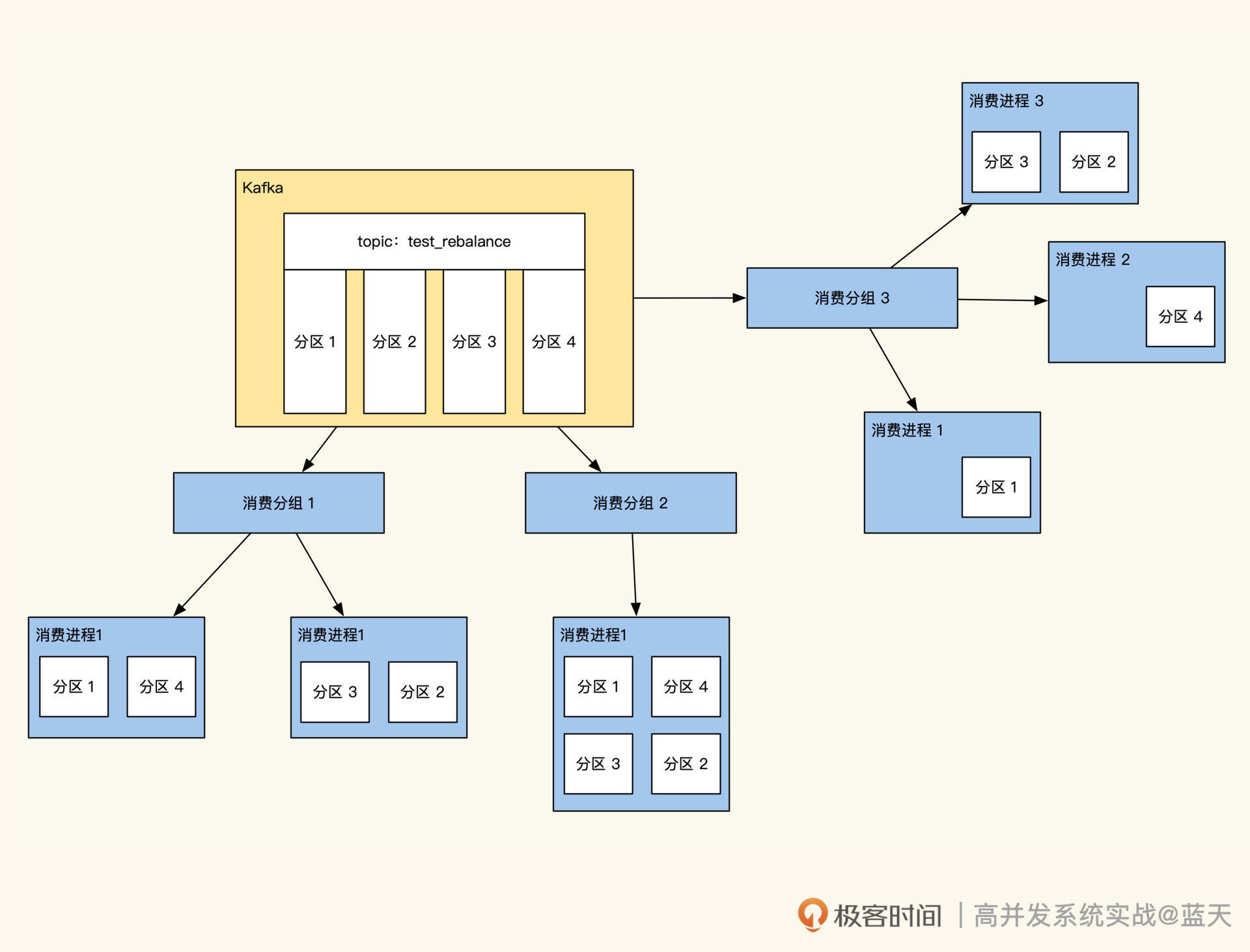 通过这个功能,我们可以动态扩容消费服务器的能力,比如随时增加消费进程数来提高消费能力,甚至一些消费服务可以随时重启。