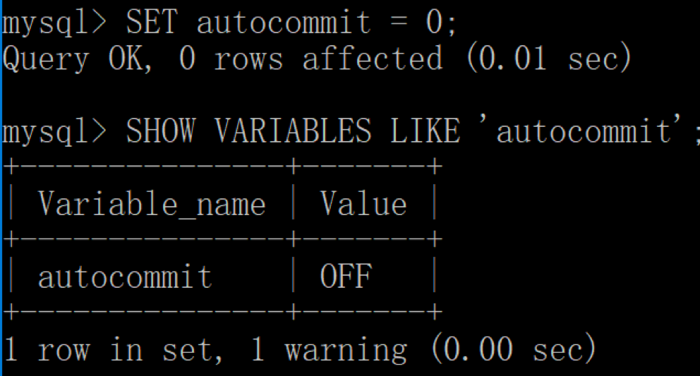 因为MySQL默认是事务自动提交,这里我们还需要将autocommit参数设置为0,命令如下: