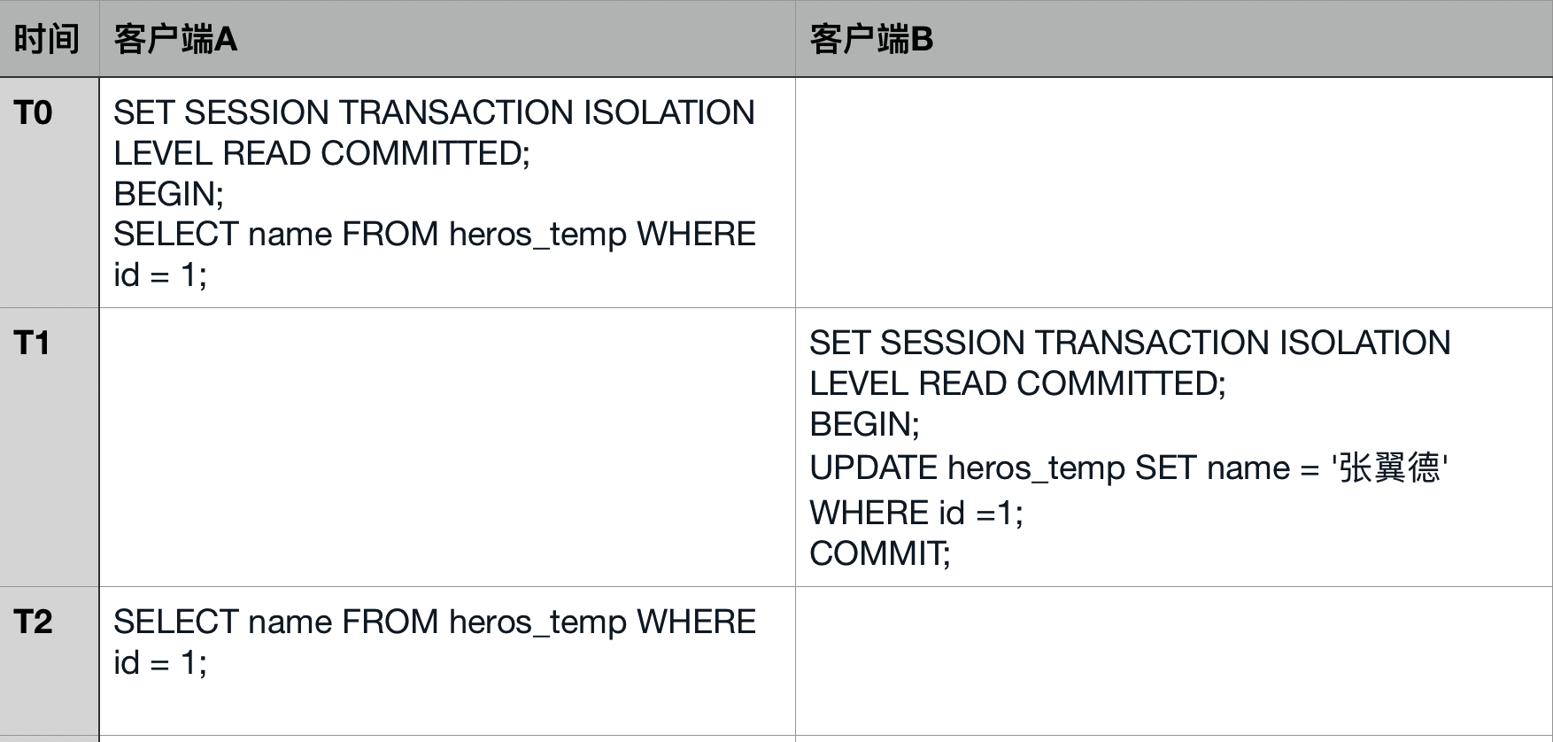 你能发现客户端1中读取了客户端2未提交的新英雄“吕布”,实际上客户端2可能马上回滚,从而造成了“脏读”。