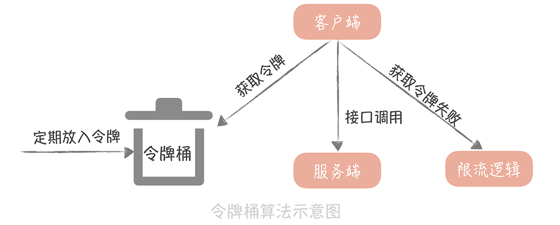 - 在处理请求之前先要从桶中获得一个令牌,如果桶中已经没有了令牌,那么就需要等待新的令牌或者直接拒绝服务;