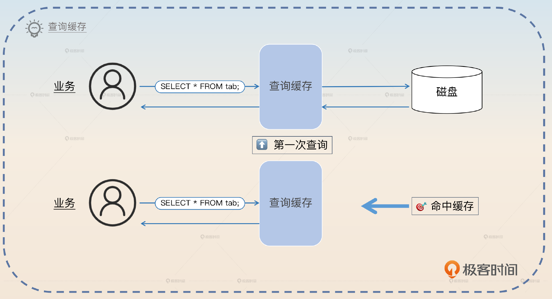 在前置知识里面我介绍了查询缓存。其实查询缓存已经差不多过时了,如果不是因为面试会问的话,可能我们也不太会地去讲这个部分,这里你有一个基本的了解就可以了。