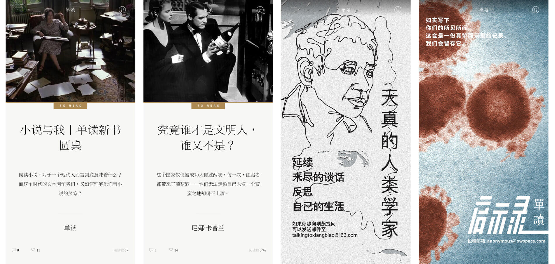 假借认知就是指,提取用户在生活中的某些固有的认知,放到界面上进行诠释,让用户感受到统一性。比如,原来Windows Mobile曾使用过杂志风,即选取用户生活中经常看到的杂志排版,然后应用在界面里。再比如,单读App选取的都是传统文学风格的字体和图片的表达,艺术性和阅读感十足,即使是完全不相关的页面,看上去风格也十分统一。