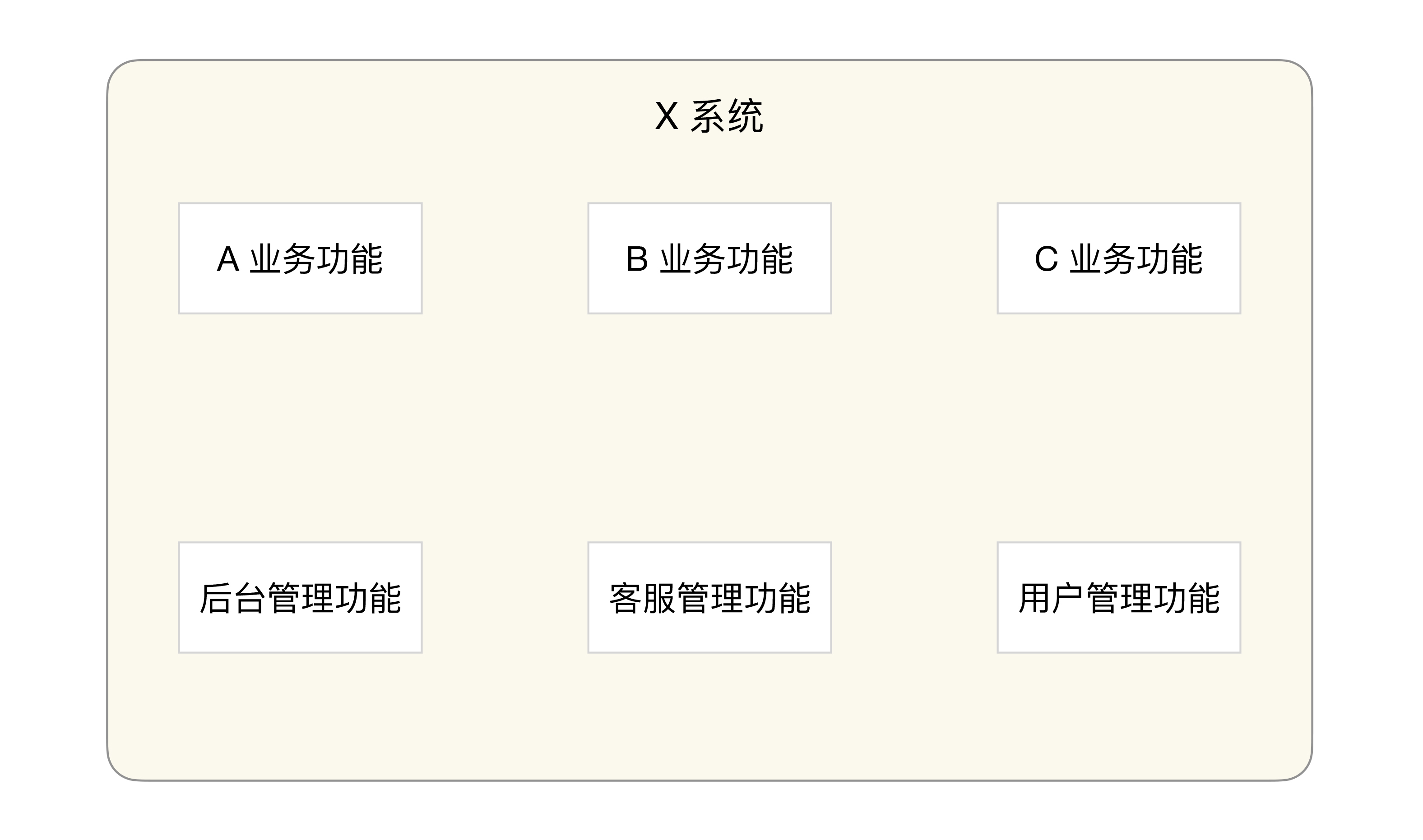 X系统是创新业务的主系统,之前在业务快速尝试和快速发展期间,怎么方便怎么操作,怎么快速怎么做,系统设计并未投入太多精力和时间,很多东西都“塞”到同一个系统中,导致到了现在已经改不动了。做一个新功能或者新业务,需要花费大量的时间来讨论和梳理各种业务逻辑,一不小心就踩个大坑。X系统的架构如下图所示: