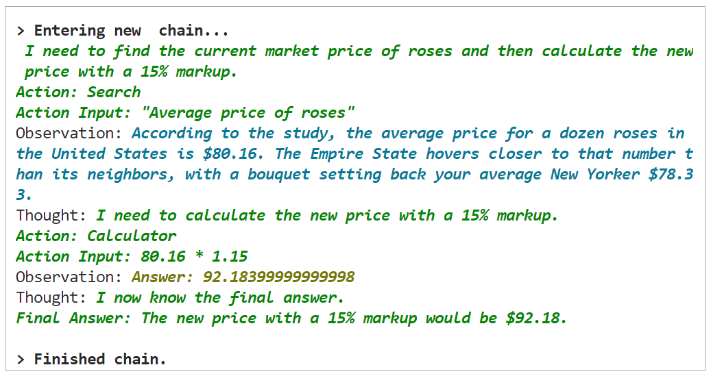 此处,我们要给代理一个任务,这个任务是找到玫瑰的当前市场价格,然后计算出加价15%后的新价格。