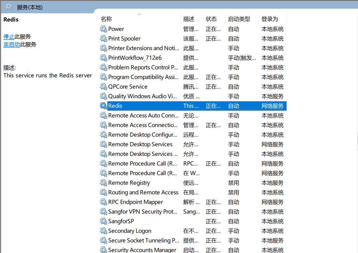我们可以在计算机服务选项中找到Redis。可以看到,Redis已经启动了,这也说明Redis已经安装成功了。