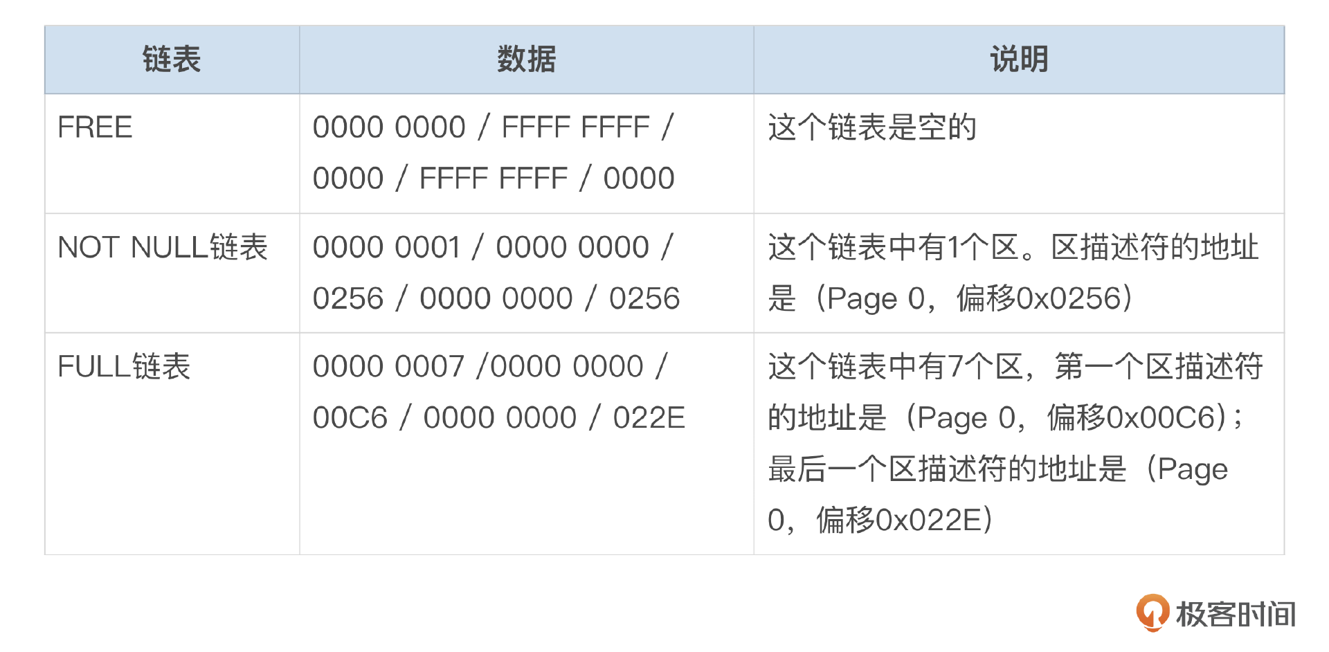 位于FREE链表中的区完全空闲。当需要分配一个完整的区时,从FREE链表中获取。如果FREE链表中没有可分配的区,则需要将未初始化空间中的区加入进来,或者扩展文件后再将区加入进来。