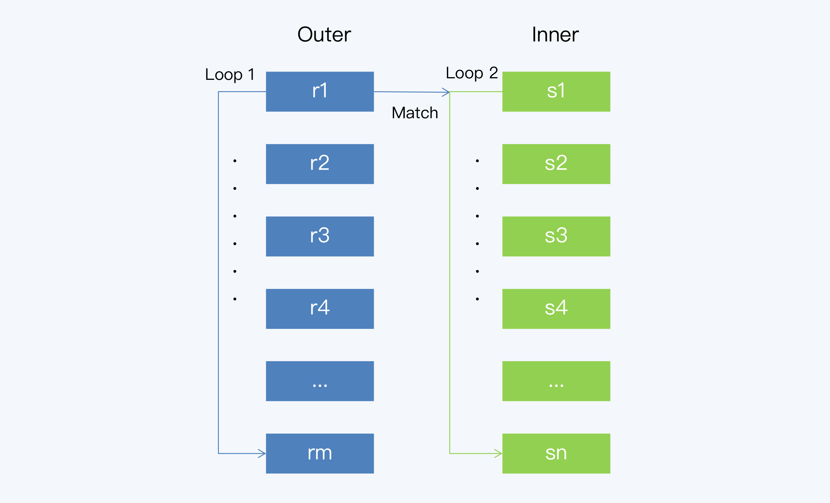- 重复步骤 1和2,直至遍历完 Outer 表中的所有数据,就得到了最后的结果集。