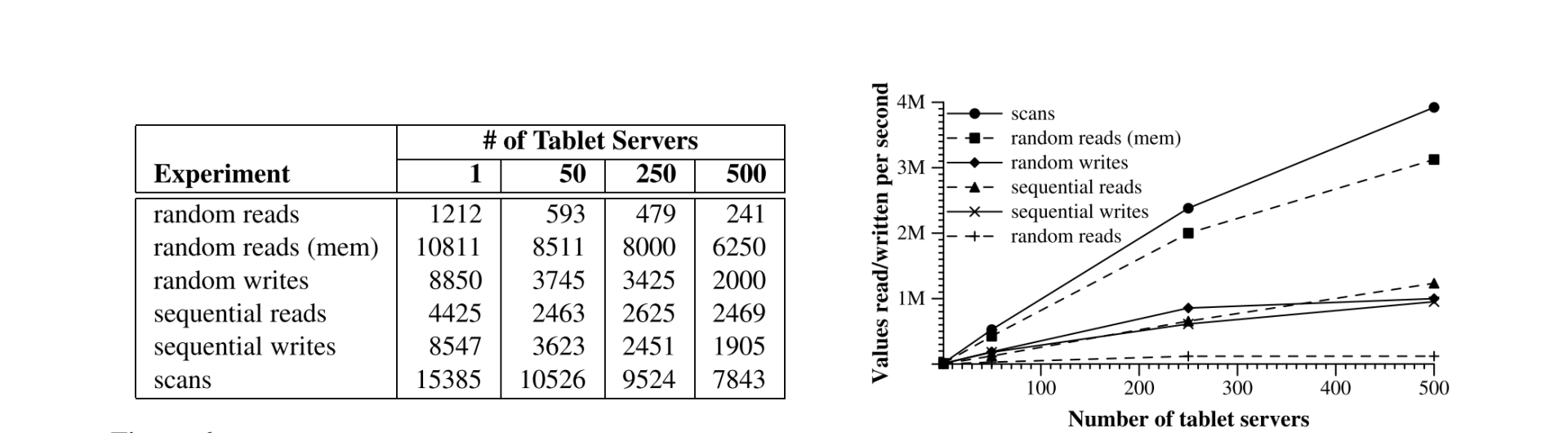 在论文第7部分的性能评估里,你也可以看到,对于Bigtable来说,数据存储在GFS上,而不是放在内存里的随机读的性能是最差的,在500个Tablet Server的环境下,单个节点数据读取的吞吐量,只有随机写入的1/8左右。