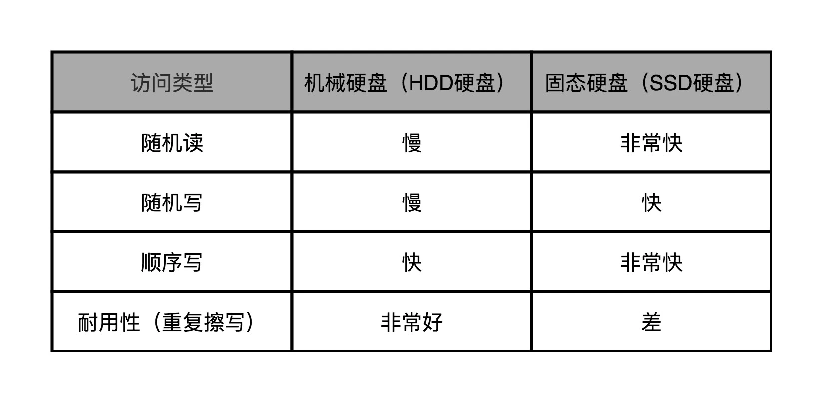 而且,在2004年,Bigtable和GFS使用的硬盘还是传统的机械硬盘。如果你学习过[《深入浅出计算机组成原理》],你就会知道机械硬盘的随机读写性能是很差的。一块7200转/秒的机械硬盘,随机读写的IOPS只有75。即使你用上了后来的SSD硬盘,随机数据写入也需要面临SSD特有的写放大问题,不仅比顺序写慢,还会影响硬盘的寿命。可以说,无论是什么硬盘,都不喜欢随机写。