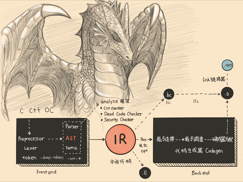 查看Clang的源码,你会发现它不光工程代码量巨大,而且工具也非常多,相互间的关系复杂。但是,好在 Clang 提供了一个易用性很高的黑盒 Driver,用于封装前端命令和工具链的命令,使得其易用性得到了很大的提升。