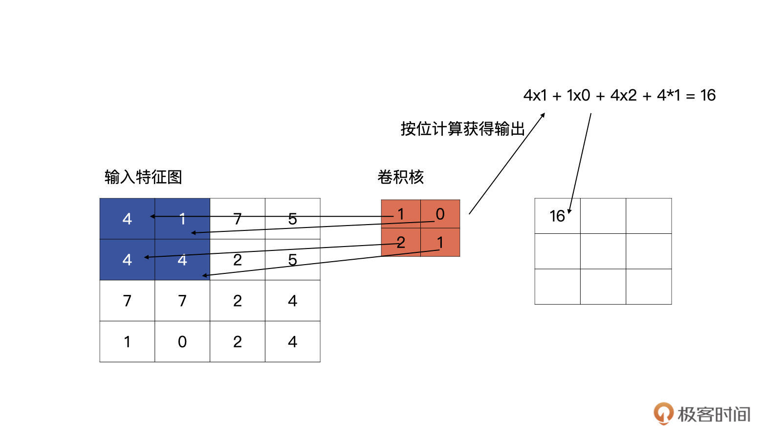 让我们回到开头的例子,可以发现,输入的尺寸是4x4,输出的尺寸是3x3。你有没有发现,输出的特征图变小了?没错,在有多层卷积层的神经网络中,特征图会越来越小。