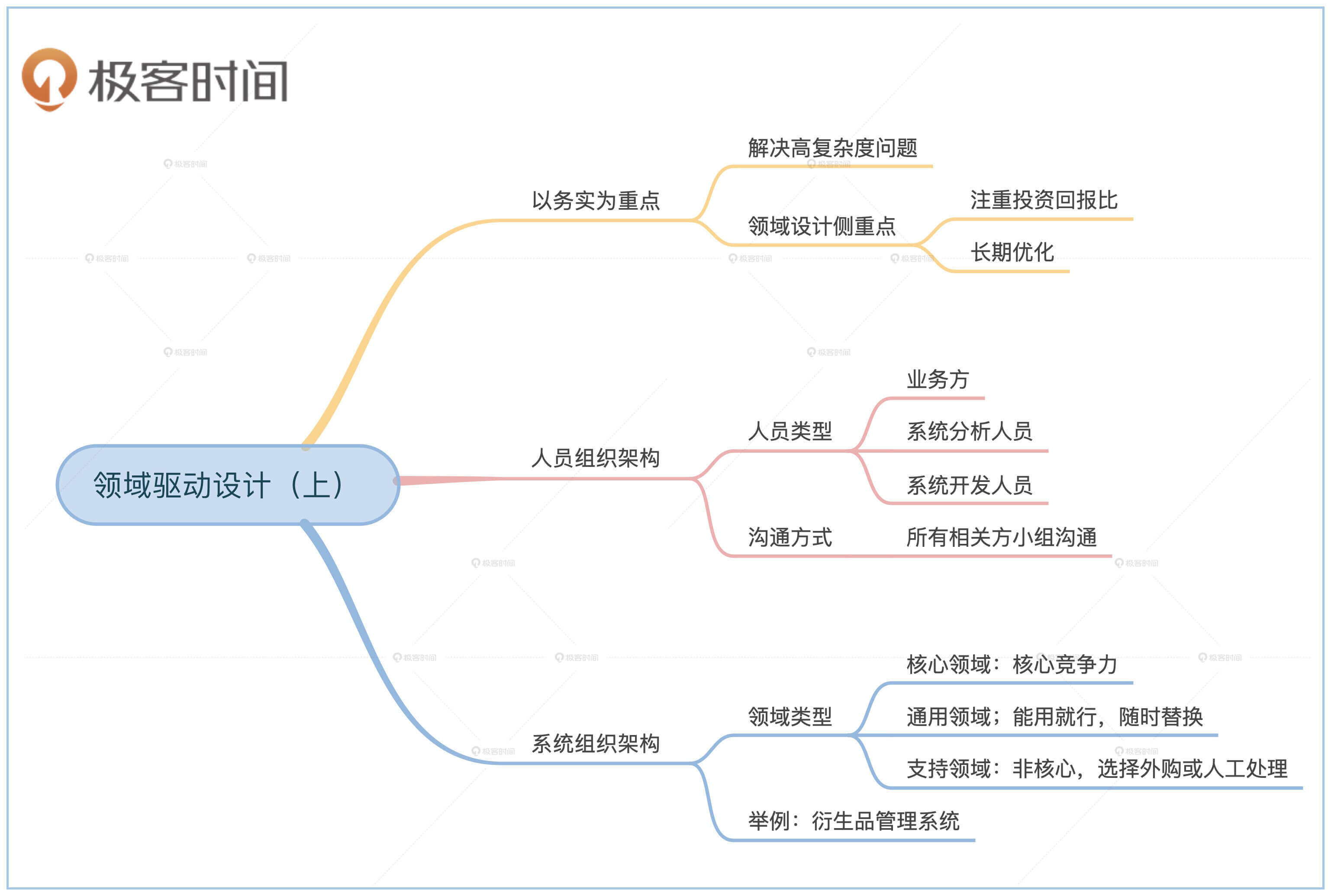 最后我们结合前面所学的内容,通过分析衍生品管理这个业务,练习了如何分析必须的系统组件,以及如何划分这些组件的领域。