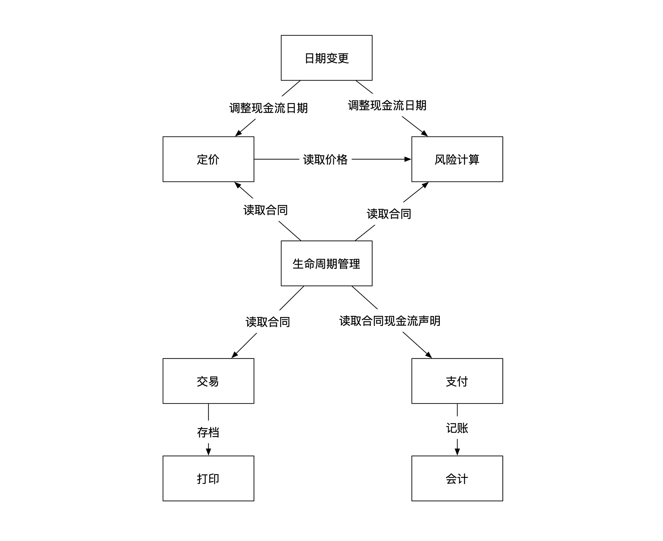 那么,一个简单的衍生品管理系统就成型了,它需要下面这些不同的领域系统:
