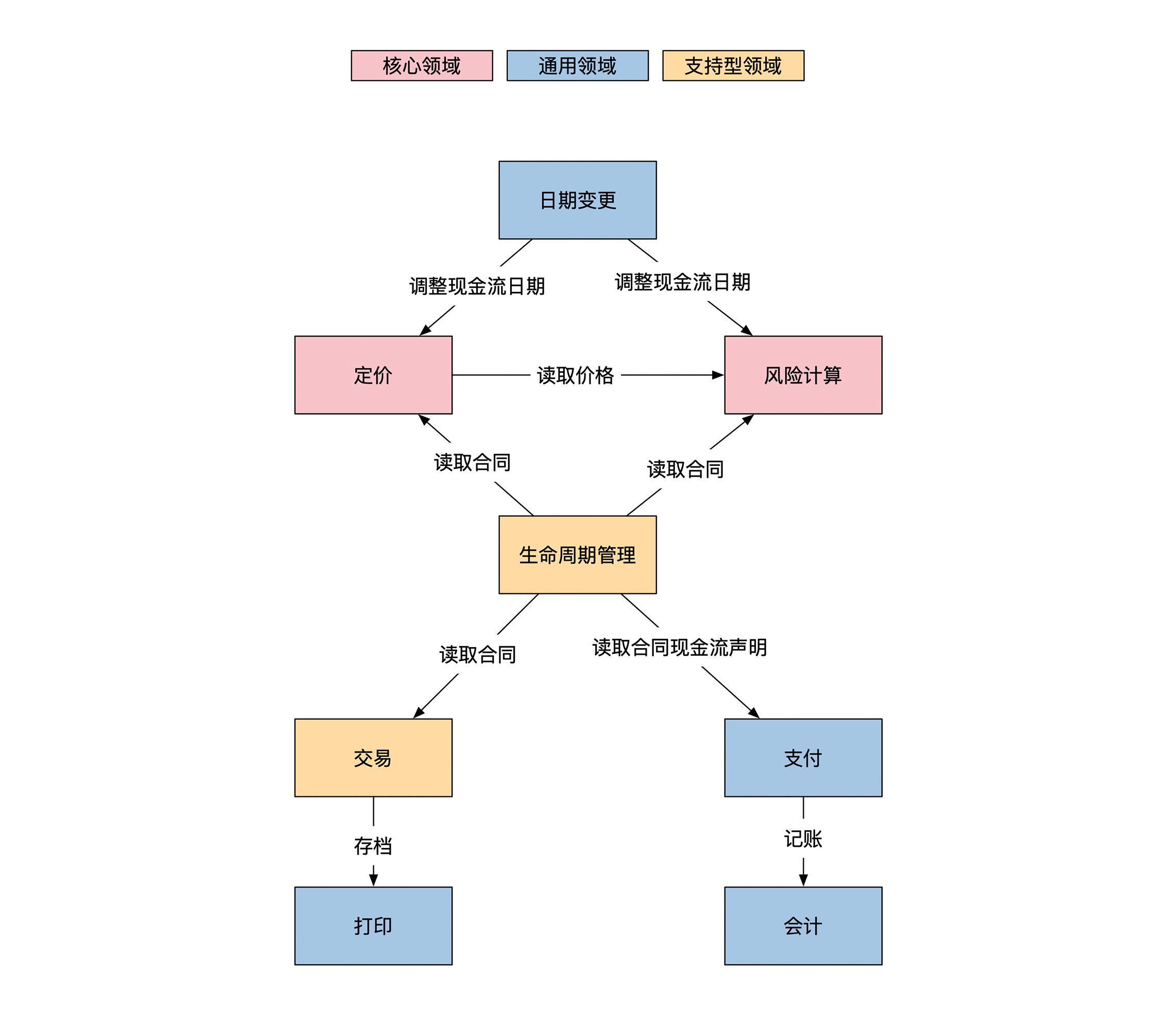 到这里,我们完成了衍生品管理系统的初步设计。接下来我们来做个练习,看看如何将每个部分划分到正确的领域。