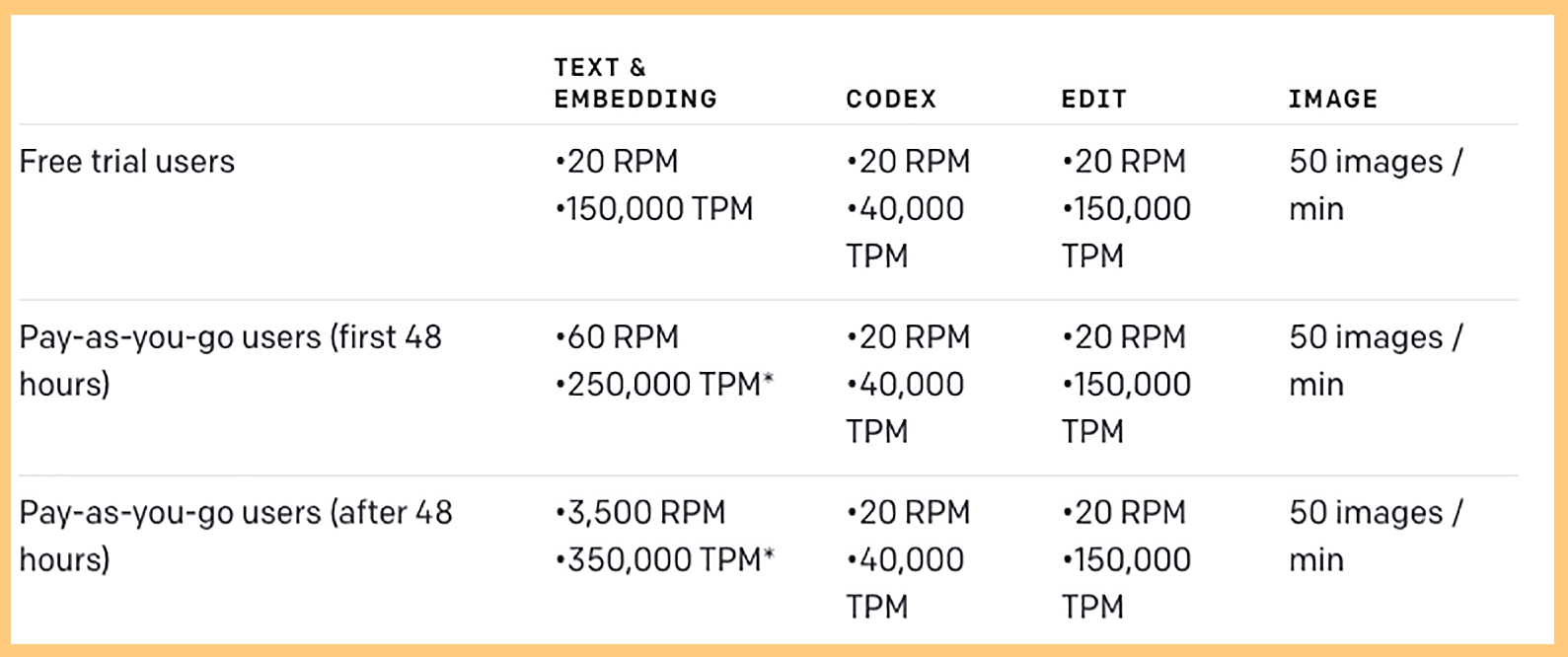 注:你可以点开这个链接,看看目前OpenAI对不同模型的限速。