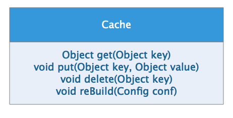 Cache实现类BazaCache(Baza是当时开发的统一缓存服务的产品名)同时实现Cache接口和CacheManageable接口,其中Cache接口提供标准的Cache服务方法,应用程序只需要依赖该接口。而CacheManageable接口则对外暴露reBuild()方法,使远程配置服务可以通过自己的本地代理调用这个方法,在运行期远程调整缓存服务的配置,使系统无需重新部署就可以热更新。