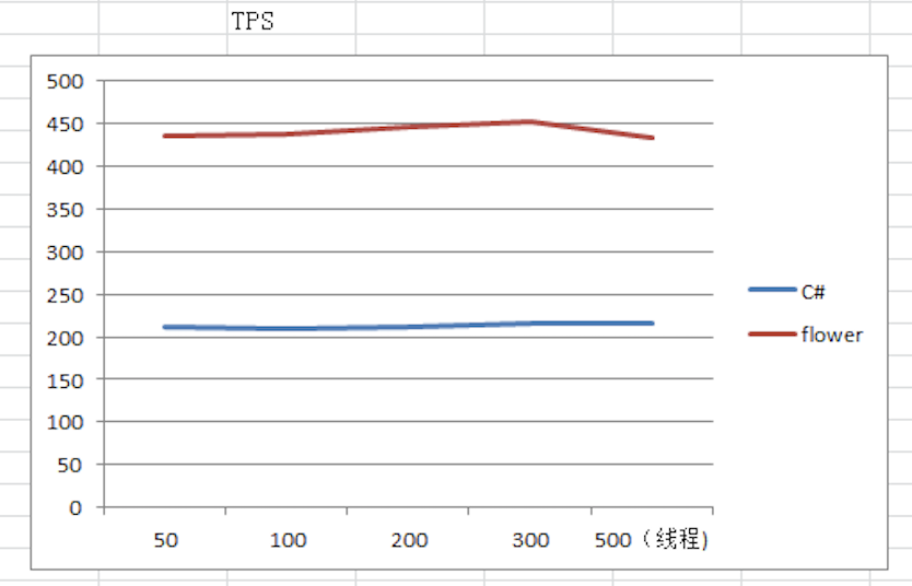 Flower框架在部分项目中落地应用,应用效果较为显著,一方面,Flower可以显著提高系统的性能。这是某个C#开发的系统使用Flower重构后的TPS性能比较,使用Flower开发的系统TPS差不多是原来C#系统的两倍。