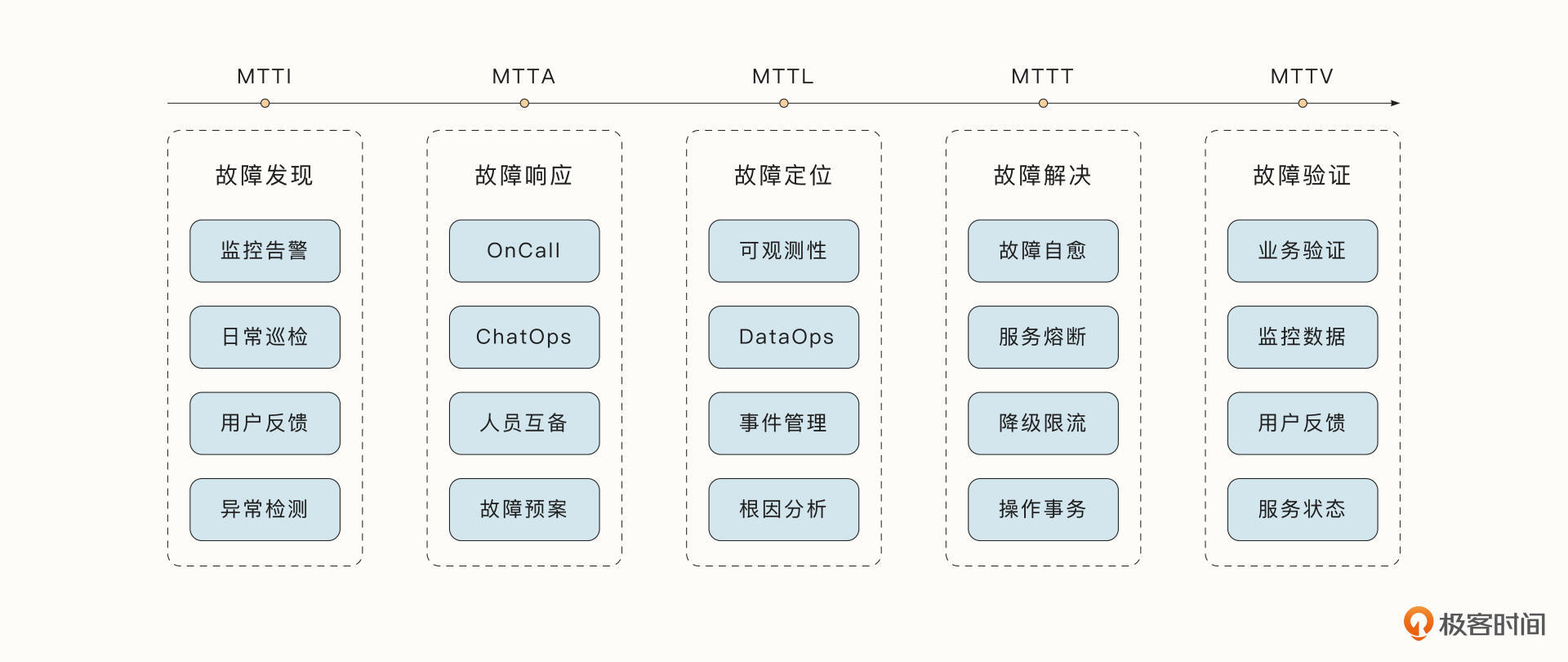 SRE工程师通常是围绕着缩减下面的几个时间来提高整个系统的稳定性水平: