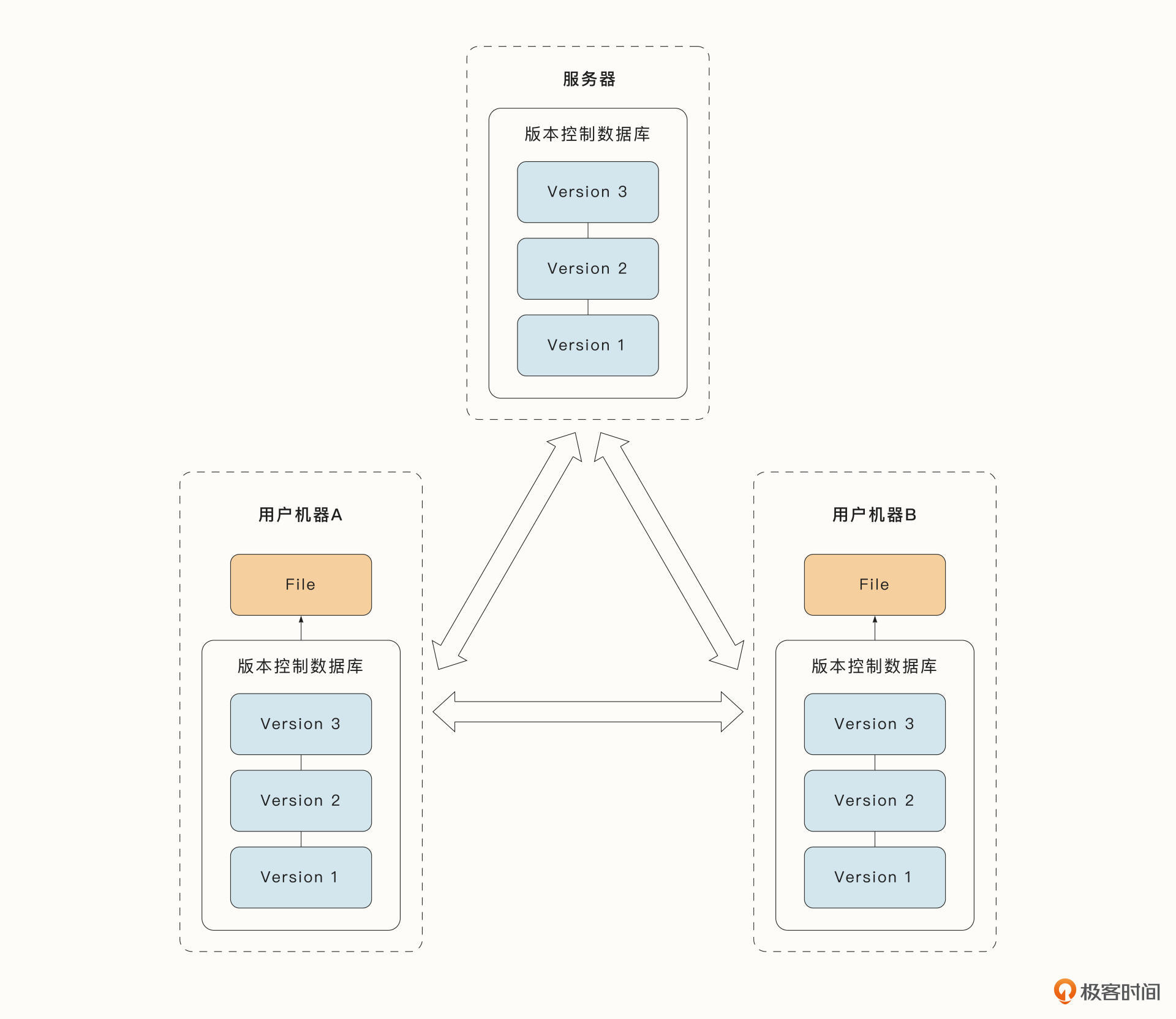 当前使用最多的分布式版本控制系统是Git。我相信任何有编程开发经验的同学对这个工具都不会陌生,我们利用GitHub、GitLab进行代码管理和版本控制时,都离不开Git。这里的分布式,指的是任何客户端从代码仓库中拉取代码时,都包含了所有的代码记录,而不仅仅是最新的代码记录。这意味着即便服务器完全不可用,我们也比较容易从任意一台用户的服务器中恢复代码。