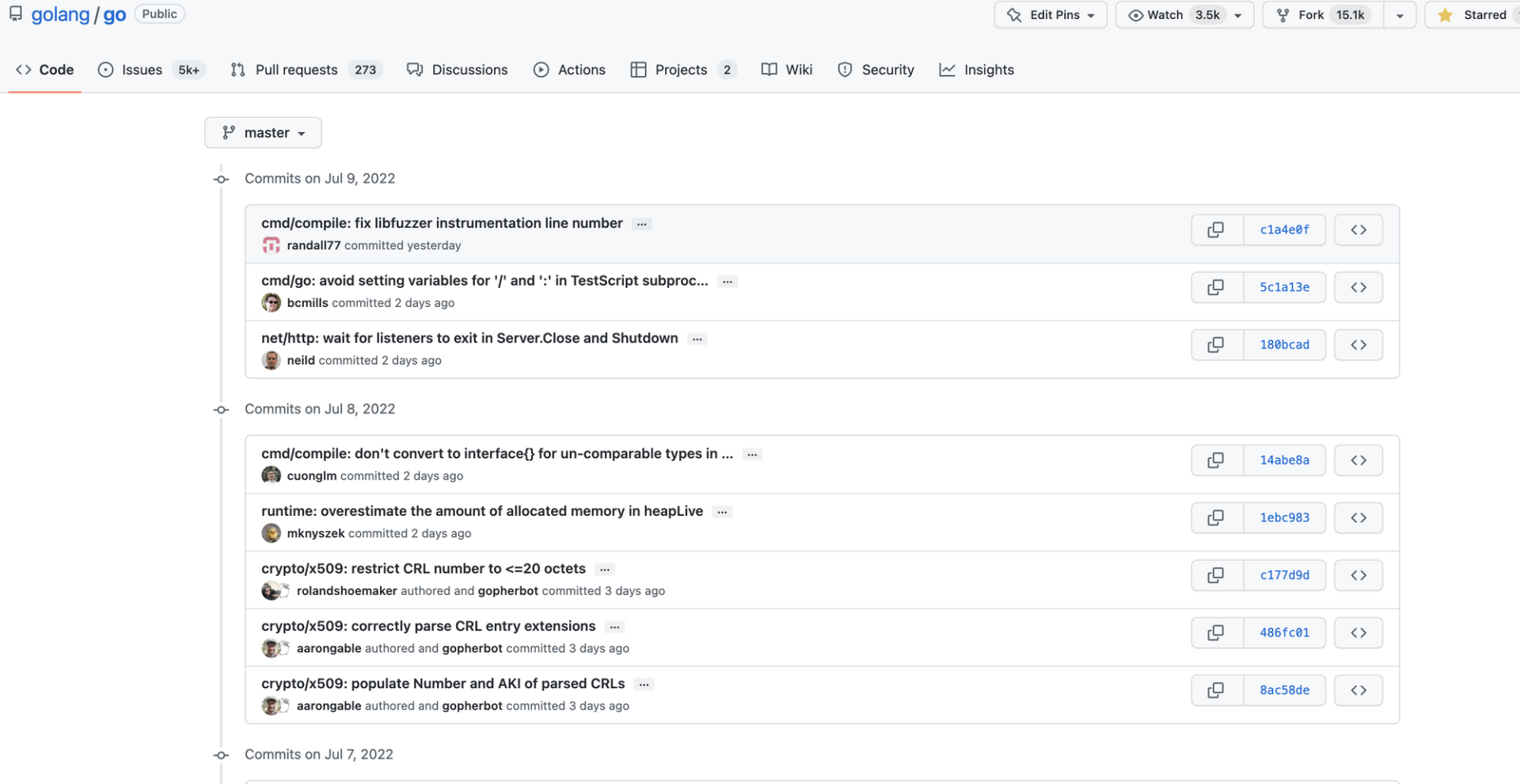 Go源码仓库中的Commit示例如下所示:
