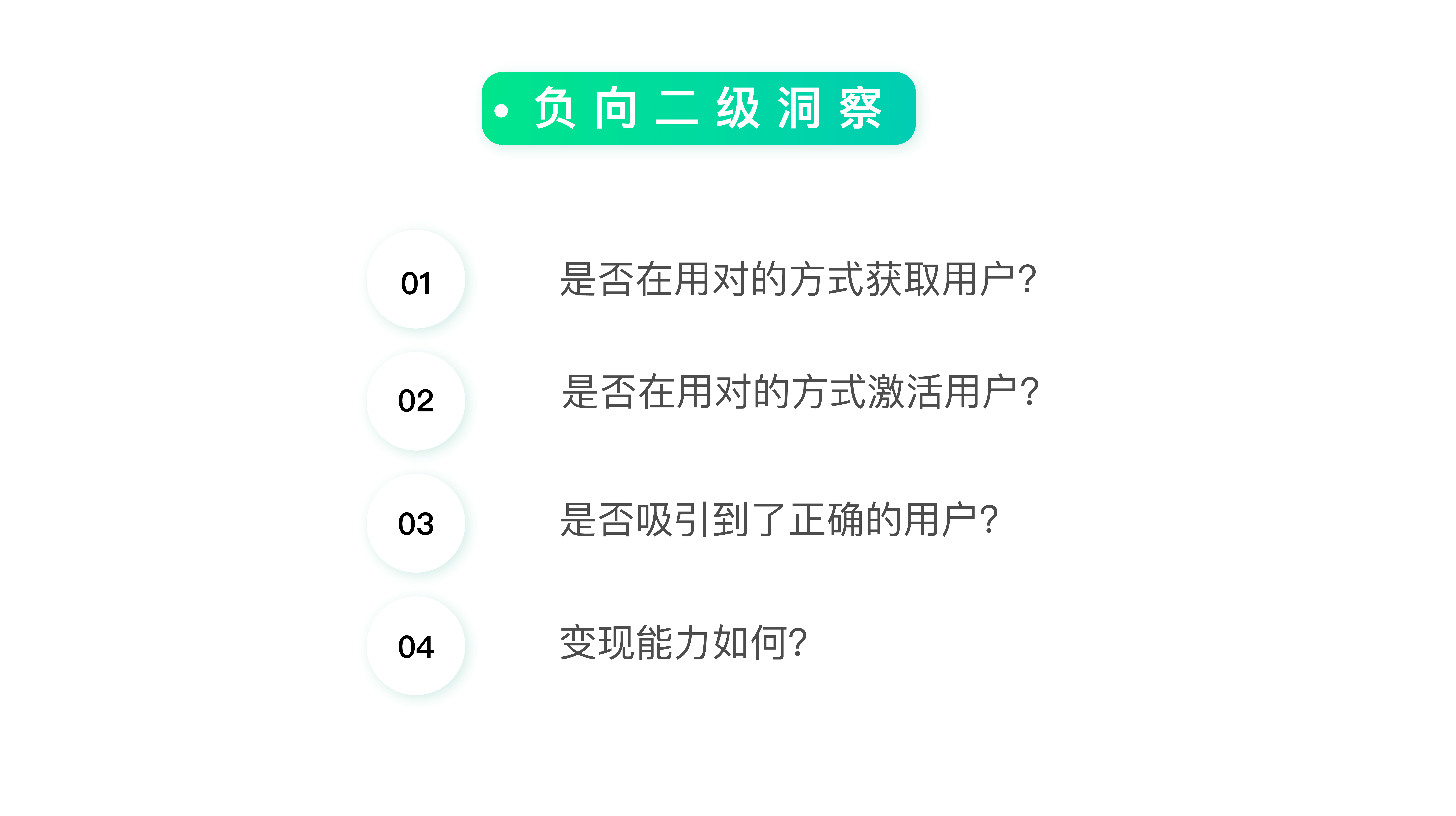 在一级方向正确的基础上,我们需要审视在过往的工作中,在整个用户生命周期过程中,我们是否做了错误的决策,导致公司的价值没有提升。这就是负向的二级洞察。
