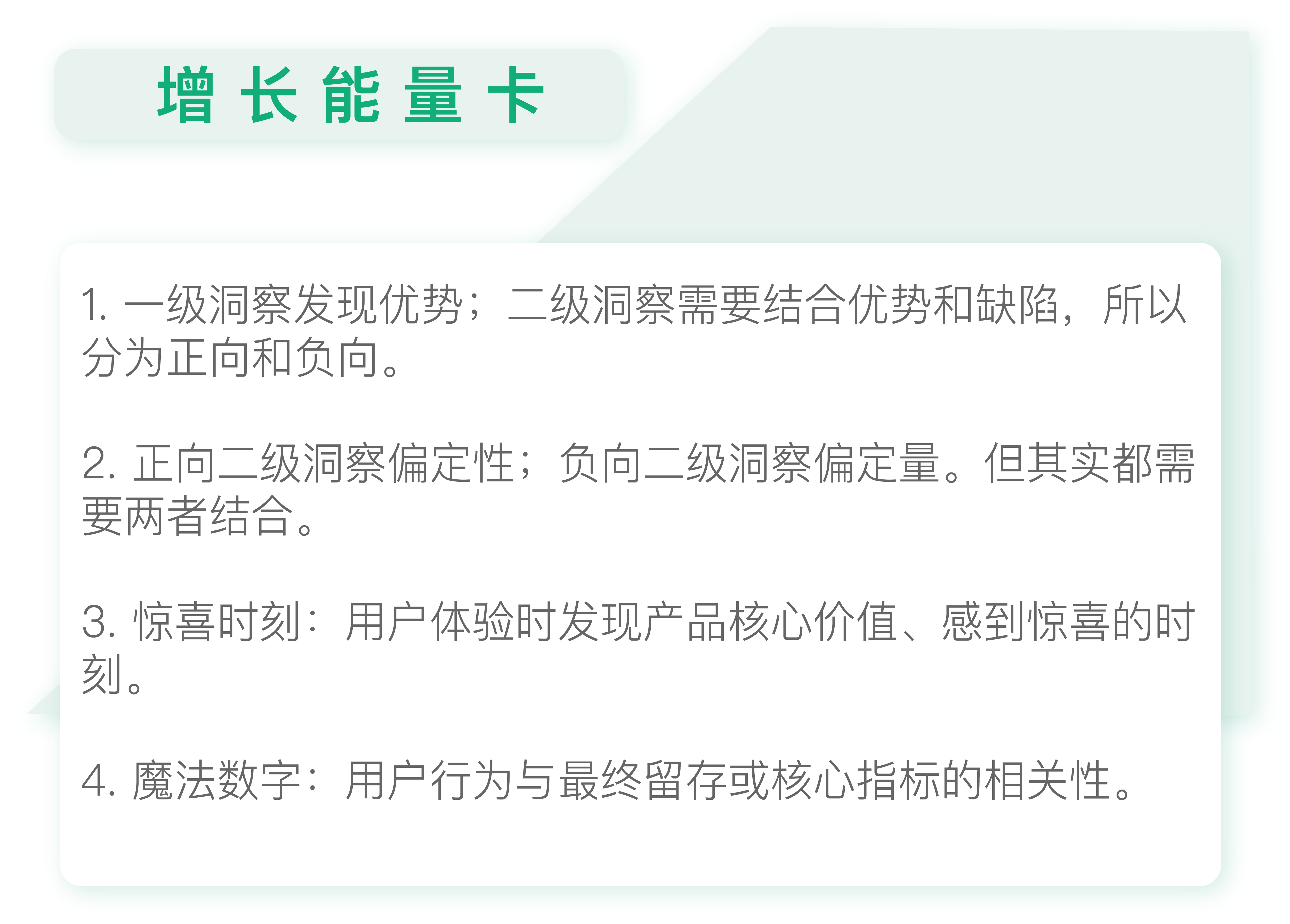 完善你的用户增长地图中的正向二级洞察和负向二级洞察。