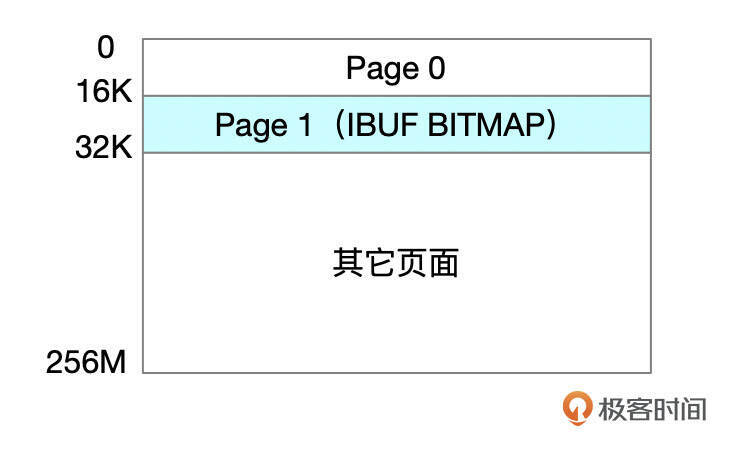 Change Buffer位图信息中,记录了每个索引页面的剩余空间信息。位图页和数据页存储在相同的表空间中。数据文件中,每256M连续空间中的第二个页面用来存储位图信息。