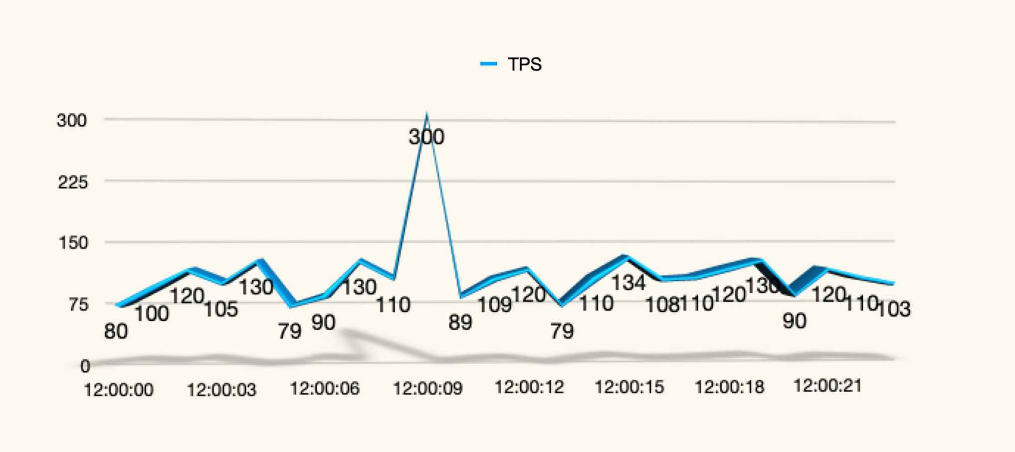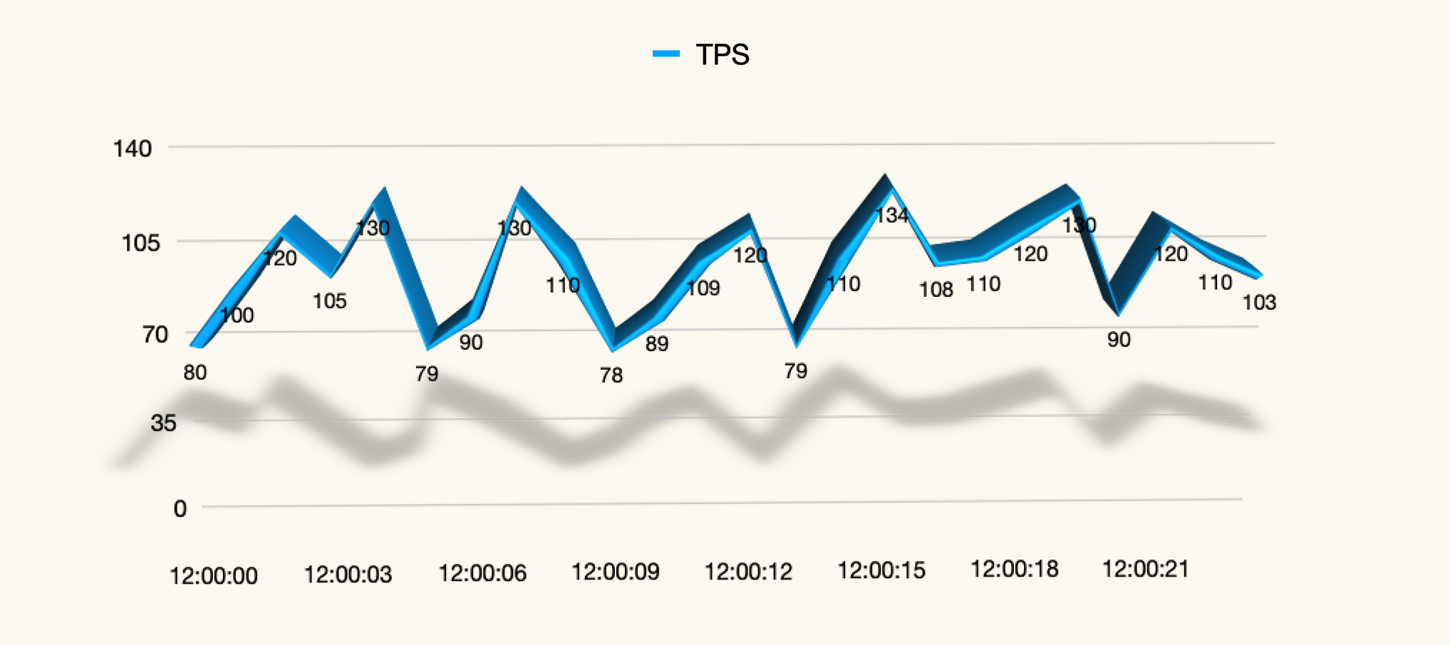 (注:不知道你有没有发现,上面这张示意图其实是有问题的。因为显然上图是在固定的压力线程之下的,而中间有一个很高的毛刺,这就有问题了,如果全都是正确的事务,不应该出现这么高的毛刺。所以这种毛刺通常都是在压力过程中由事务错误导致的。 )