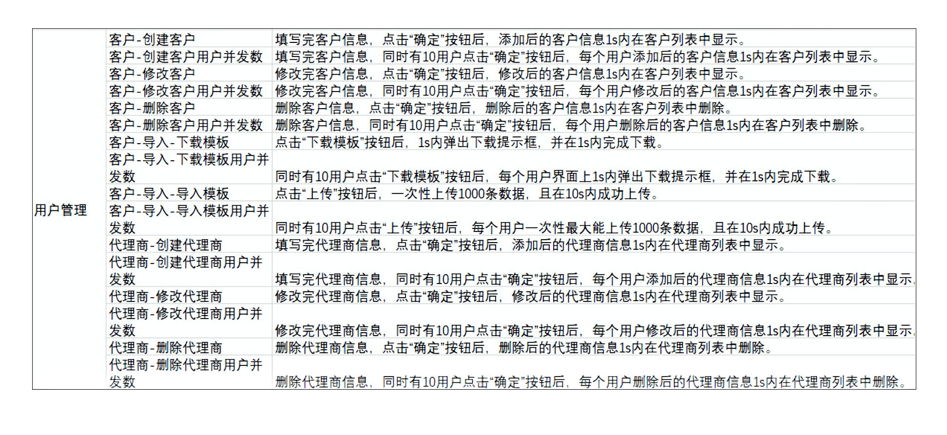像这样的性能需求,基本上就是业务方的一种直观感觉,想看看单用户的操作响应,所以算不上是什么专业的性能测试需求。