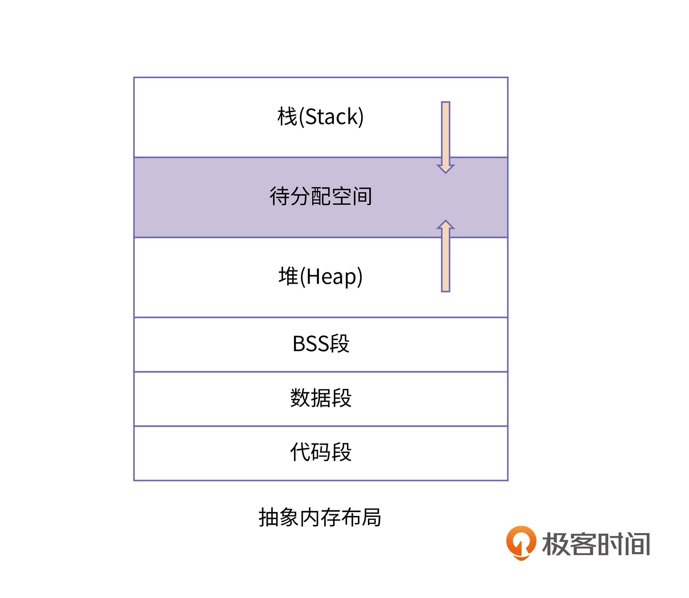 在接下来的课程中,我会给你详细介绍内存布局中的堆跟栈,这两块也是我们开发人员最常打交道的内存区域,让你对程序运行时的环境和内存状态有一个更深入的理解。