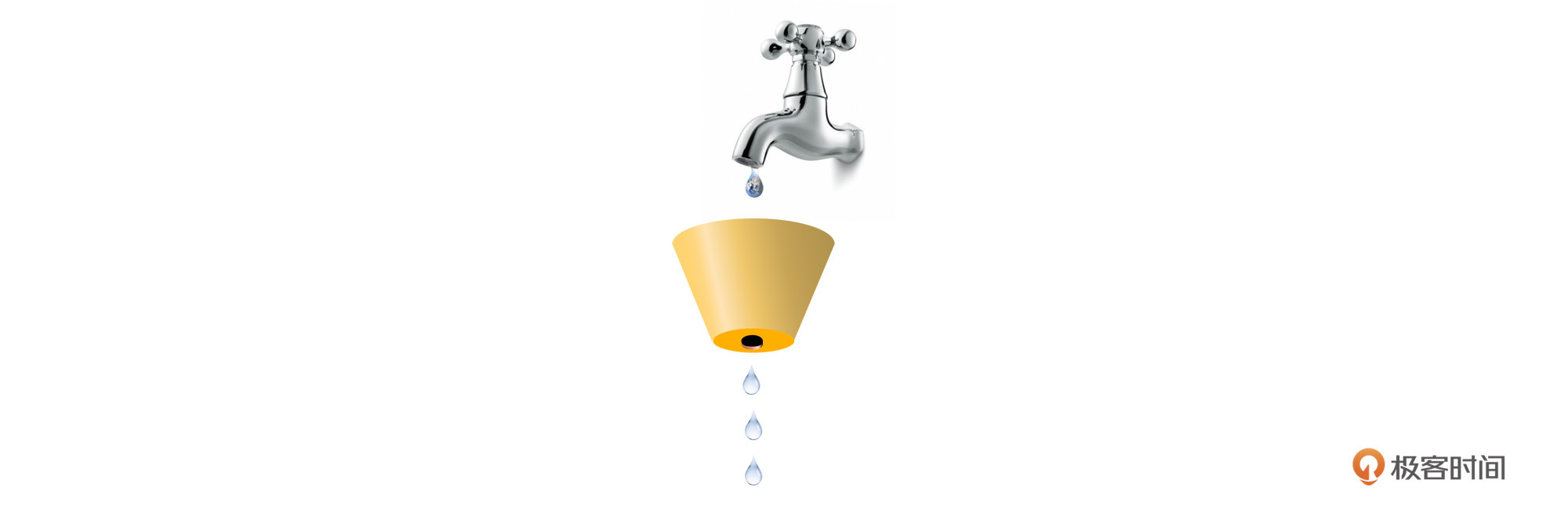 水龙头的水先流入漏桶,再通过漏桶底部的孔流出。如果流入的水量太大,底部的孔来不及流出,就会导致水桶太满溢出去。