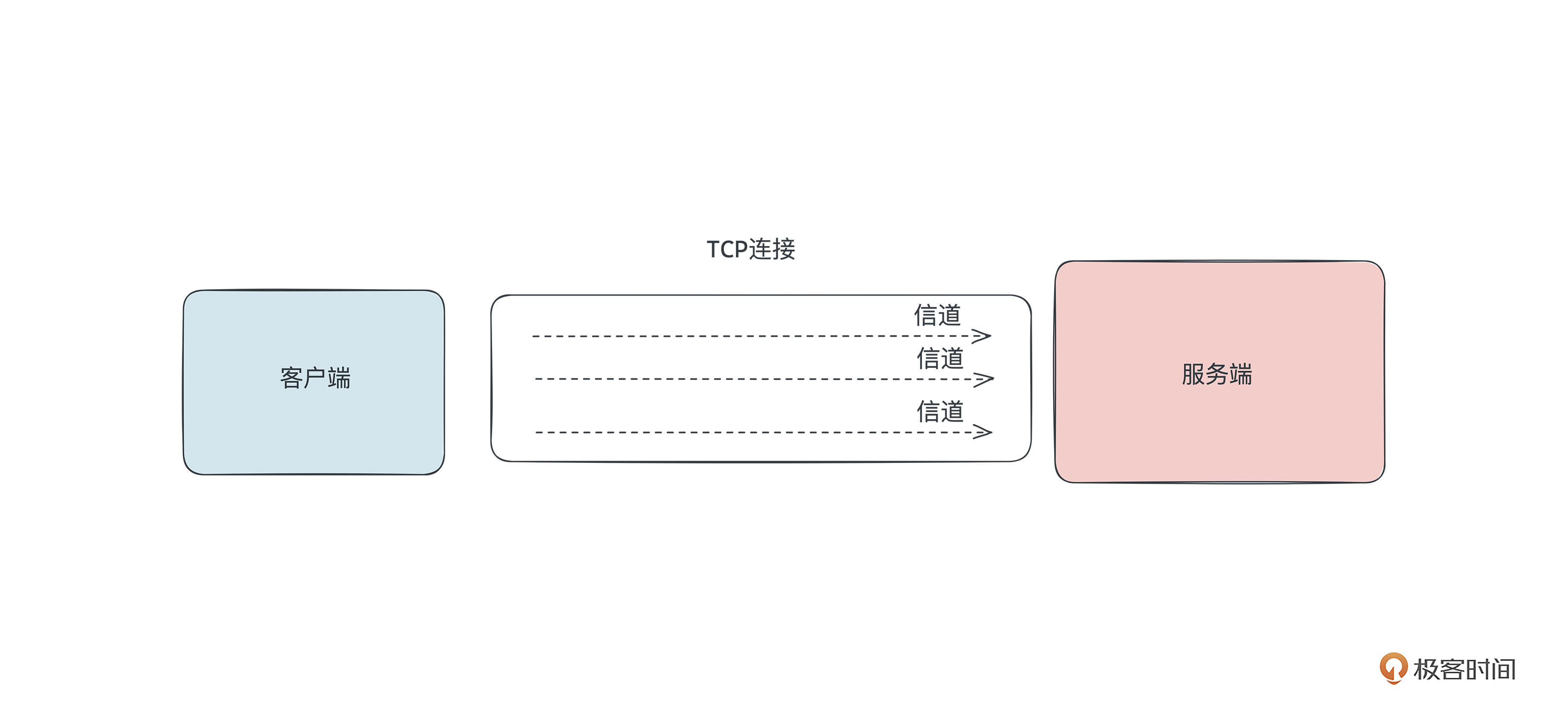这是在一条真实的TCP连接中,创建信道(channel,可以理解为虚拟连接)的概念。通过编程手段,我们把信道当做一条TCP连接使用,做到TCP连接的复用,避免创建大量TCP连接导致系统资源消耗过多。缺点是在协议设计和编码实现的时候有额外开发工作量,而且近年随着异步IO、IO多路复用技术的发展,这种方案有点多余。