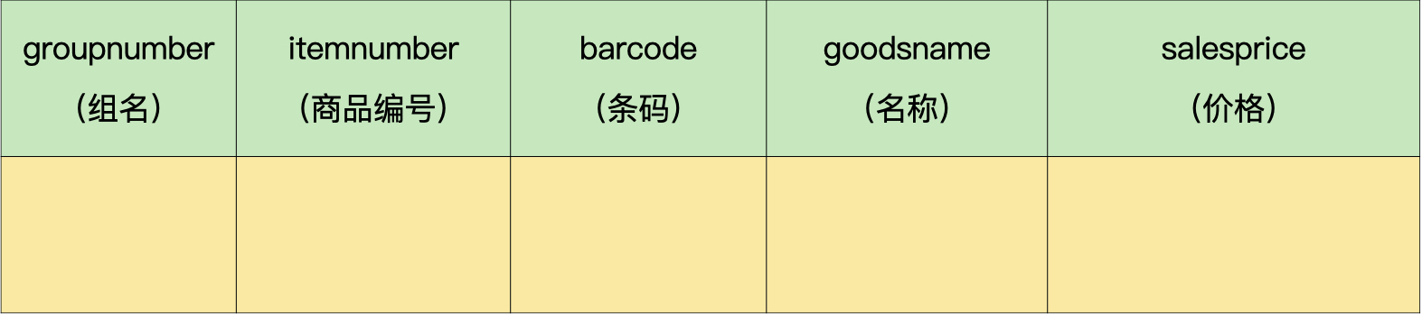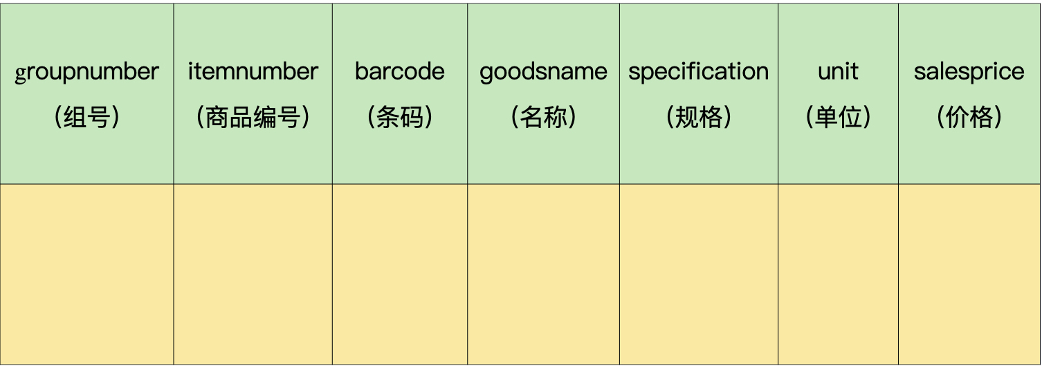 - 商品:组号、条码、名称、规格、单位、价格。