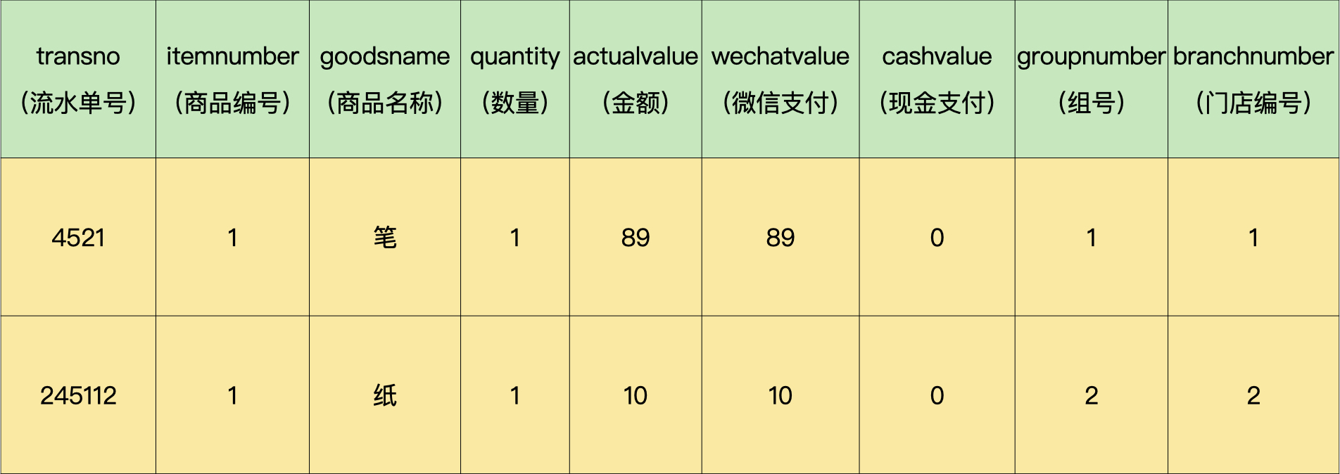 假设我有一个数据库demo,当中有一个商品流水表(demo.trans),示例如下: