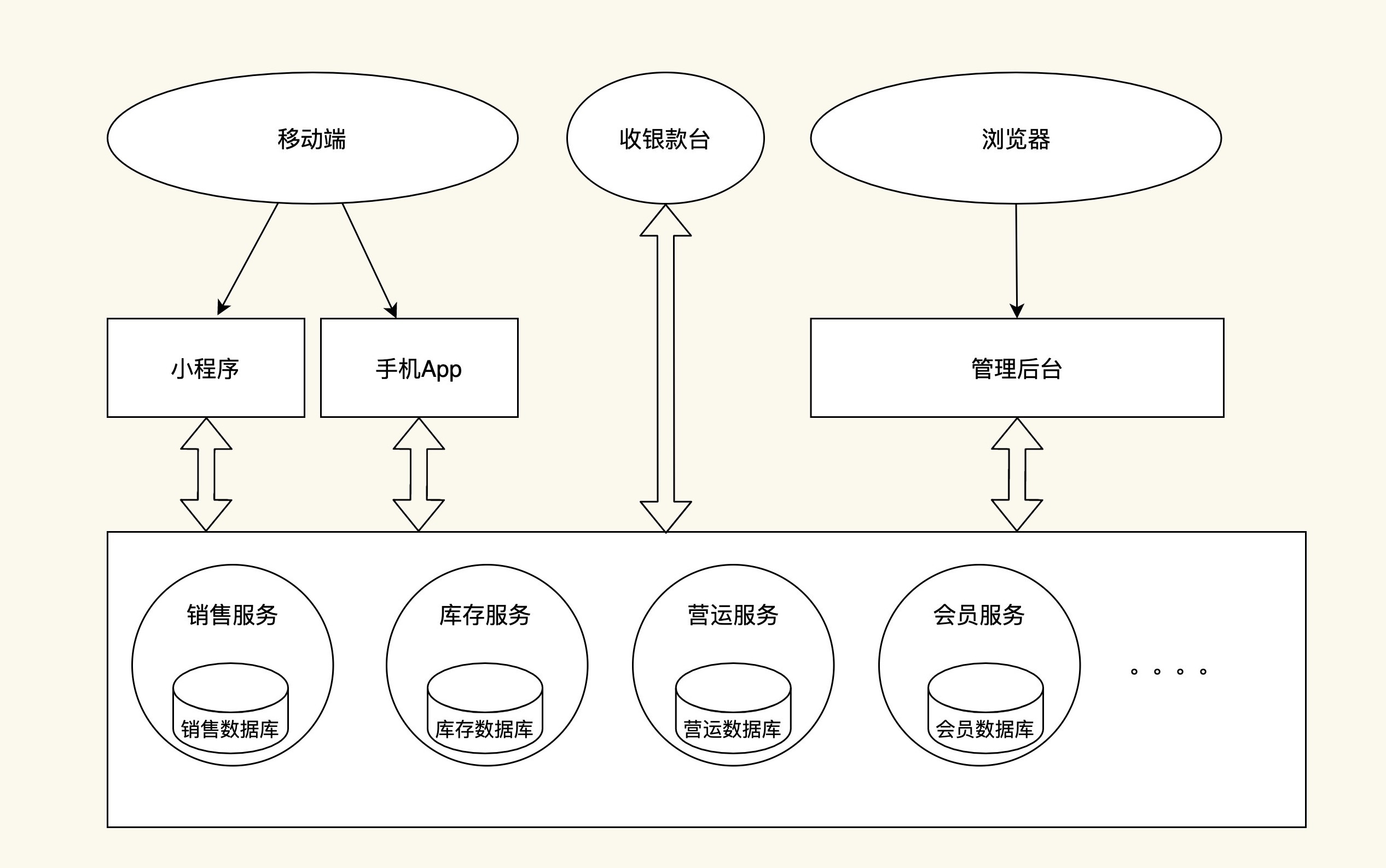 - 服务层:包括云端的销售模块、库存模块、营运模块、会员模块等。