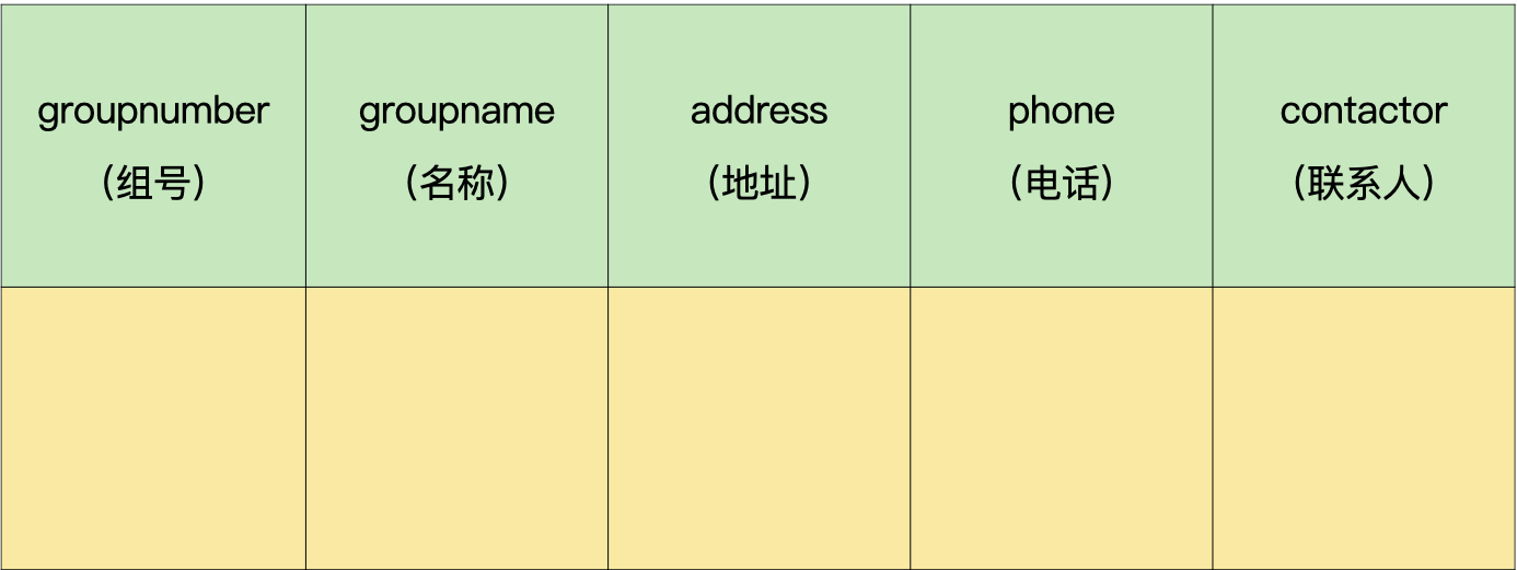 - 商户:组号、名称、地址、电话、联系人。