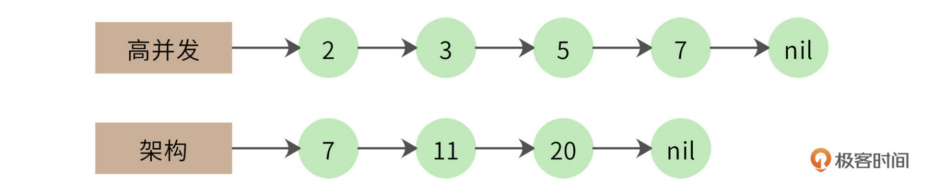 事实上,两个1千万长度的链表求交集,最终的结果可能不过几万,也就是说,大部分的比较都是不相等的。比如下面的例子。
