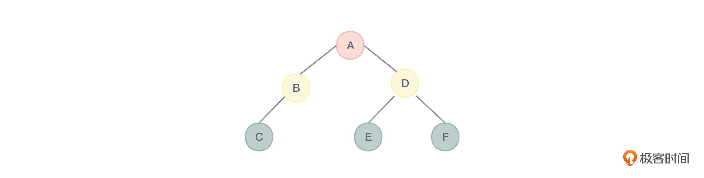 - 既然完全确定了一棵二叉树,其后序遍历结果序列自然也就得出了:CBEFDA。
