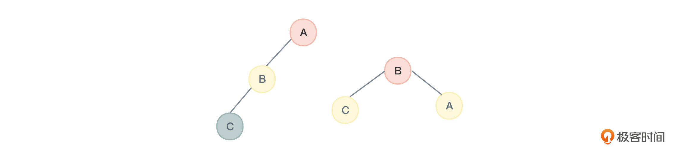 还是以图1为例。三类二叉树的遍历顺序, 按照“左根右”的口诀,就应该是:BAC、BA、AC。