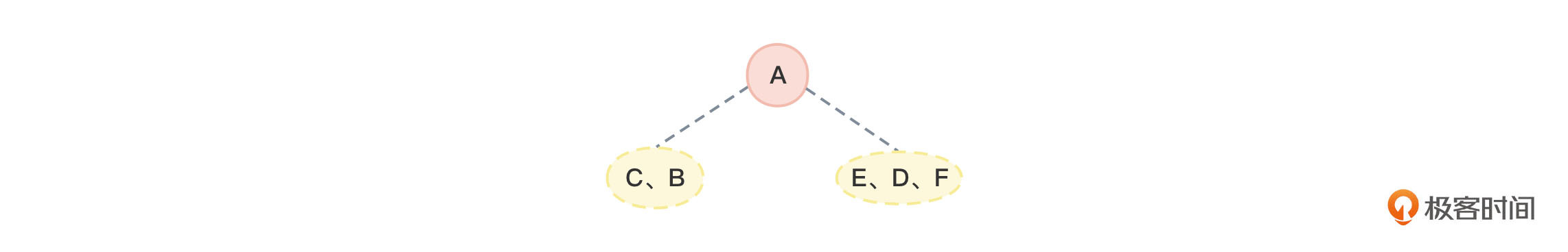 - 根据中序遍历序列CBAEDF,可以知道C、B是根节点A的左子树中的节点,而E、D、F是根节点A的右子树中的节点。如图10所示: