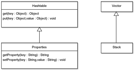 这两个类都是从JDK1就已经存在的,我想,如果能够重新再来,JDK的工程师一定不会这样设计。这也从另一个方面说明,不恰当的继承是很容易就发生的,设计继承的时候,需要更严谨的审视。