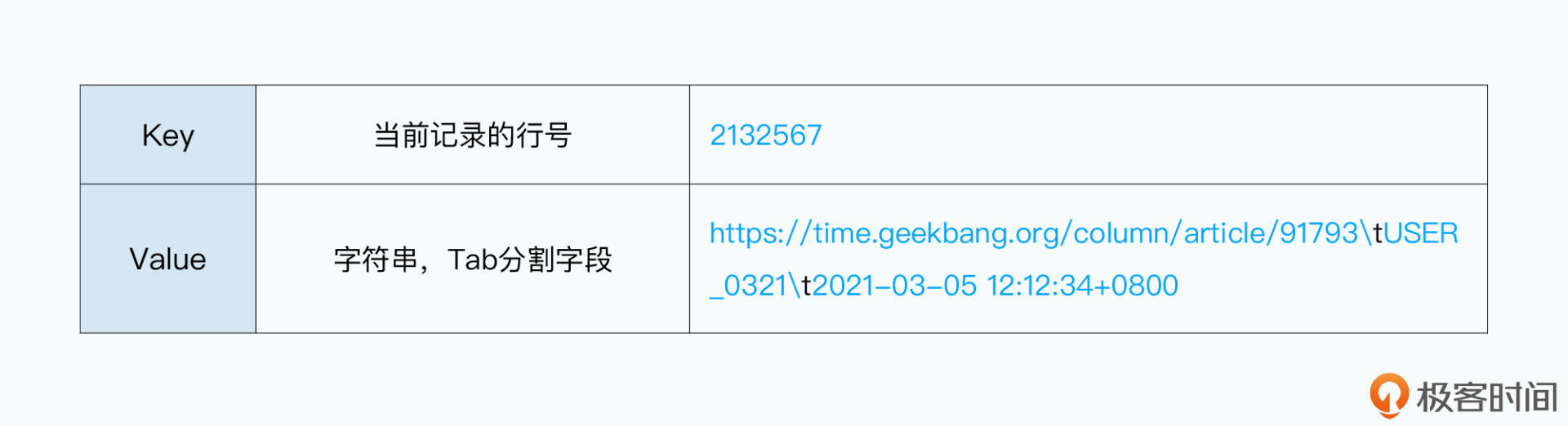 - Value就是对应单条记录的字符串,不同字段之间以Tab分割。