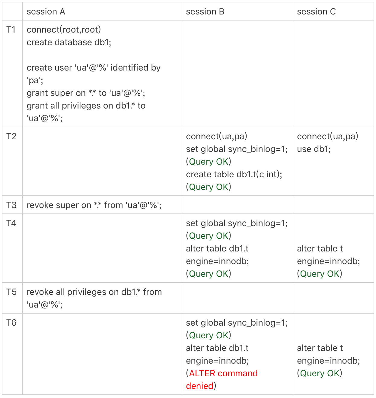 需要说明的是,图中set global sync_binlog这个操作是需要super权限的。