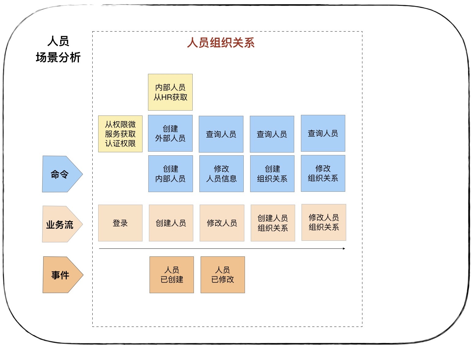 下面这个图是人员组织关系场景分析结果图,详细的分析过程以及考勤的场景分析就不描述了。