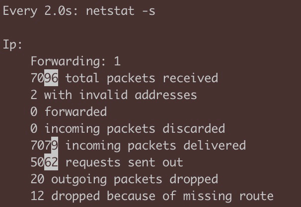 当然,上面这个算运维“青铜”版。你也可以写一个简单的脚本,在两次netstat -s命令之间执行sleep,然后计算两个读数之间的差值,并除以sleep的时间,得到大致的变化速度。这样就又升级了一点。