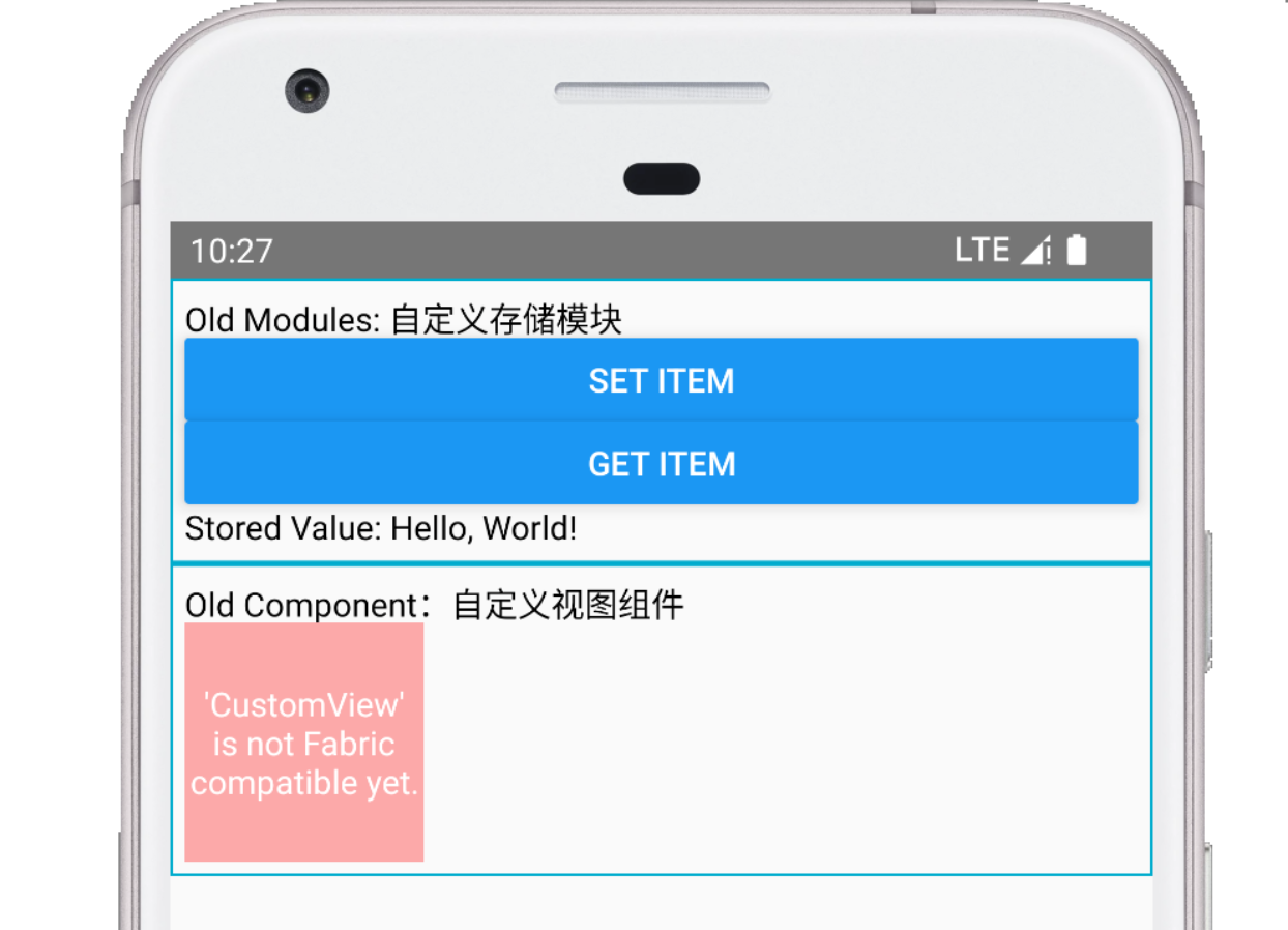 可以看到,老的自定义模块 StorageModule 正常运行。它能够从 Native 侧正确地存储和读取 “Hello, World!” 这段文字。