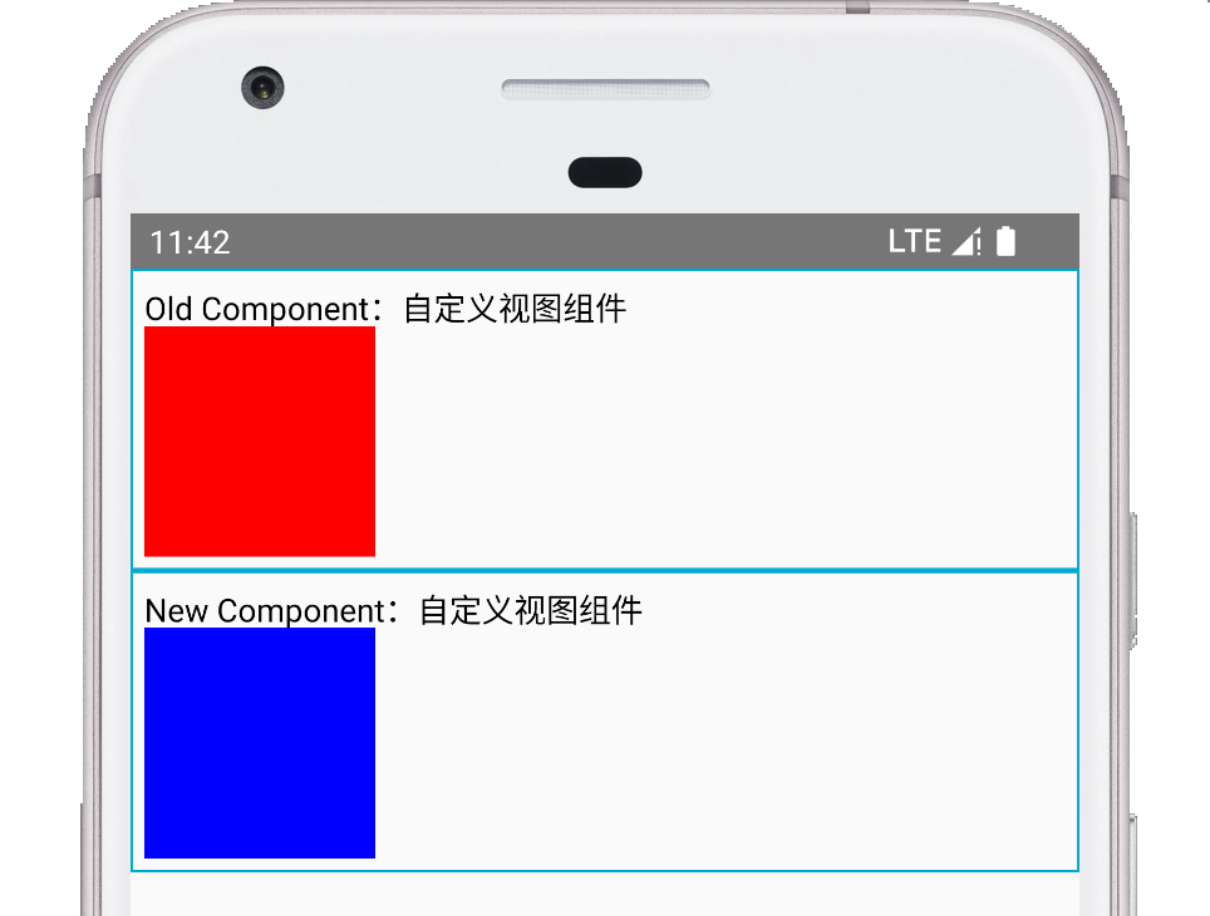 老组件是一个自定义视图 CustomView,它只有简单的设置背景颜色的功能。如果颜色设置成功,那么就说明这类老组件代码在新架构中能够直接使用。