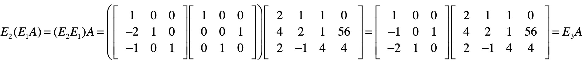 我们先让$E1$左乘$A$,然后再让$E2$左乘$E1A$的结果,就能得到消元后的系数矩阵。