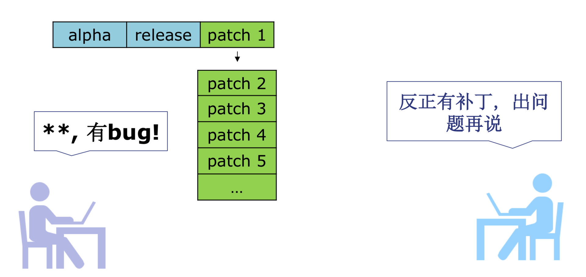 我们在讨论版本发布速度,是需要兼顾效率和质量。如果不考虑交付质量,每天一个版本也很轻松。在严格保证交付质量的前提下,两周发布一个版本其实并不容易。特别是出现紧急安全或者稳定性问题的时候,我们还需要有1小时的发布能力。