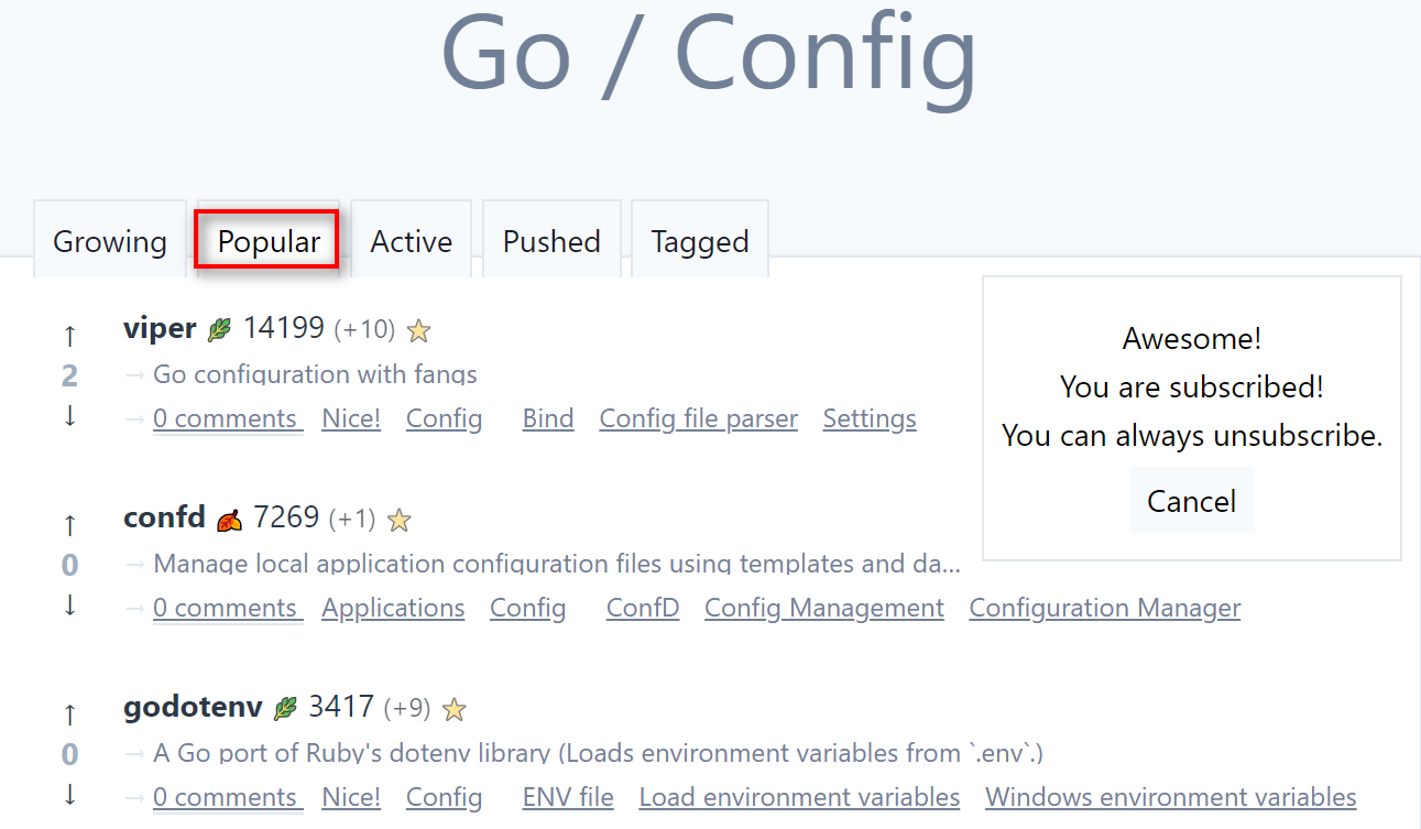 libs.garden 包含了很多编程语言的评分,包括 Go 语言,地址为 https://libs.garden/go。你可以通过以下3步查找需要的开源项目: